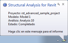 (Structural Analysis for Revit) en la barra de tareas del sistema y, a continuación, haga clic en Completado.