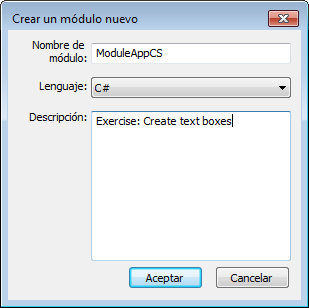 Se abre el cuadro de diálogo Crear un módulo nuevo.