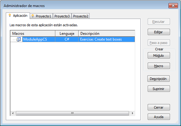 Nota: Si la aplicación o el documento actual ya contiene módulos, es preciso activar las macros en la configuración de Seguridad de macros.