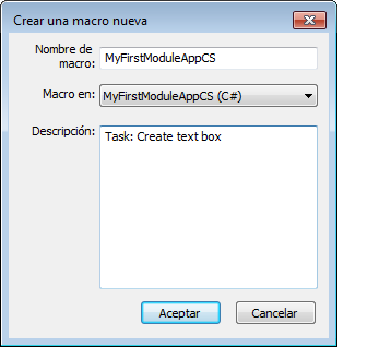 - (Opcional) Añada una breve descripción de la macro en el campo Descripción.