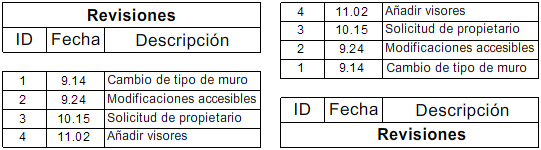 - Arriba-abajo: los encabezamientos de columna aparecen en la parte superior de la tabla de planificación de revisiones. Las filas de revisión comienzan en la parte superior de la tabla y continúan hacia abajo.