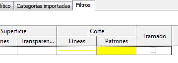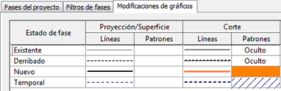 Modificaciones de visibilidad/gráficosProyección/Líneas de corte