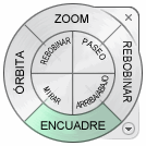 SteeringWheels consta de menús dinámicos (siguen al cursor) que permiten acceder a diferentes herramientas de navegación 2D y 3D desde una sola herramienta.