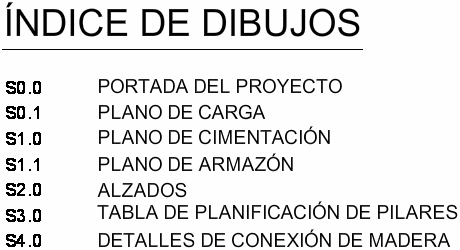 También se denomina índice de dibujos o índice de planos. Las listas de planos se pueden utilizar como tablas de contenido de conjuntos de documentos de construcción.