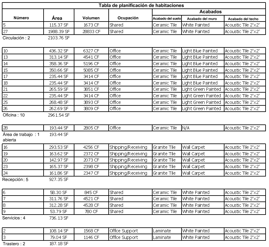 Todas las tablas de planificación se actualizan automáticamente cuando se modifica el proyecto. Por ejemplo, si mueve un muro, el tamaño en pies cuadrados se actualiza en consonancia en una tabla de planificación de habitaciones.