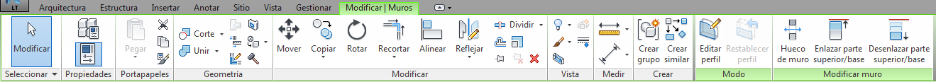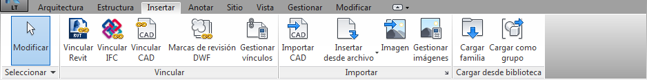 La cinta de opciones aparece al crear o abrir un archivo. Proporciona todas las herramientas necesarias para crear un proyecto o una familia.