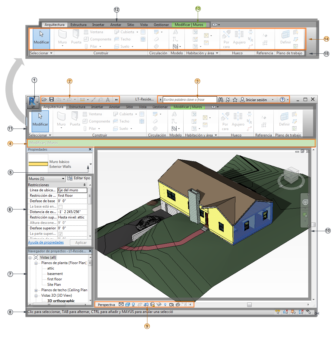 | 14 | Herramientas en la ficha actual de la cinta de opciones |