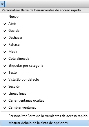 La barra de herramientas de acceso rápido contiene un conjunto de herramientas por defecto. Es posible personalizar esta barra de herramientas para que muestre las herramientas utilizadas con mayor frecuencia.
