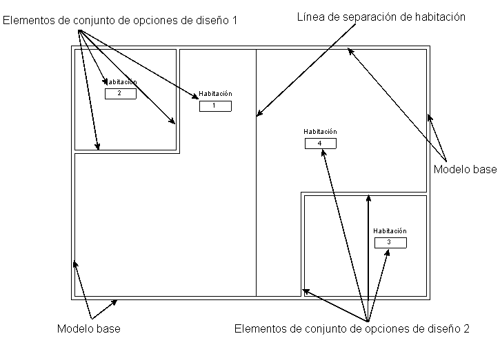Si la forma, el tamaño o la ubicación de la habitación es igual en opciones diferentes y desea que las opciones asignadas a la habitación sean iguales para todas las opciones, mantenga la habitación en el modelo base.
