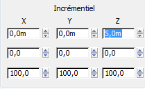 En mode relatif, les valeurs des coordonnées XYZ sont les valeurs locales. A l'origine, chacune d'elles est égale à 0.