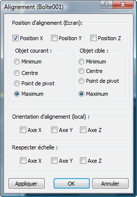 (Aligner), puis sur l'objet Box001.