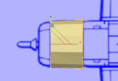 (Sélection et déplacement). Dans la fenêtre Gauche, déplacez le cylindre de façon à bien le centrer sur l'image de l'avion. Dans la fenêtre Dessus, déplacez-le vers l'avant de façon que son arête arrière coïncide avec celle du capot.