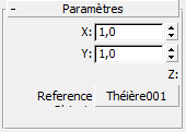 Une fois que vous avez créé un opérateur Données, vous pouvez l'enregistrer comme un opérateur Flux de particules ordinaire. Commencez par exposer les principaux paramètres. Il s'agit dans ce cas des composants de vecteur (les paramètres Valeur du sous-opérateur Scalaire) et du bouton du sous-opérateur Sélectionner un objet.