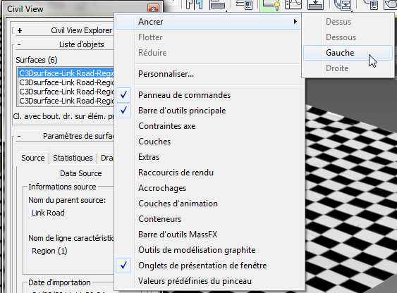 Explorateur Civil View. 3ds Max ouvre l'Explorateur Civil View, qui est un grand panneau vous permettant d'accéder à la plupart des fonctionnalités de Civil View.