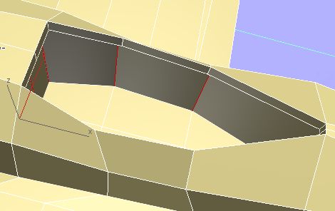 - Deux boucles d'arêtes latérales ont été interrompues par l'ouverture du cockpit et sont à présent interrompues par le grand polygone qui forme le sol du cockpit. Pour résoudre ce problème,