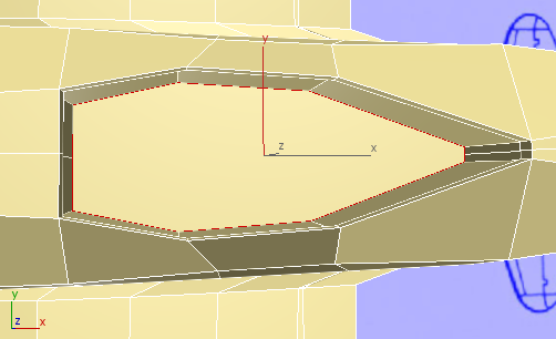 (Anneau). 3ds Max sélectionne toutes les arêtes verticales dans un anneau autour de l'intérieur du cockpit.