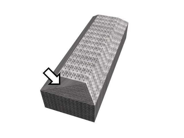 zoom avant, vous verrez que le mapping pourrait être nettement amélioré. Les parties supérieure et latérale de la boîte semblent correctes, mais des traînées se forment sur les surfaces biseautées du dessus de la boîte.