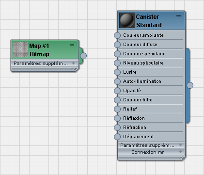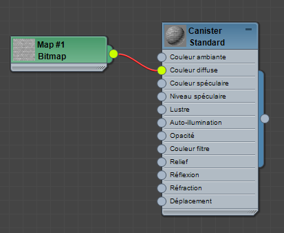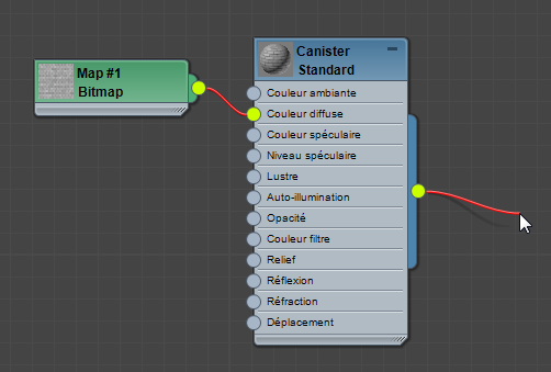 La technique glisser-déplacer à partir du connecteur de sortie d'un noeud de matériau est une alternative à l'utilisation de l'option