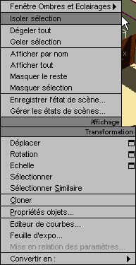 (Bascule Isoler sélection). La fenêtre montre encore une fois la scène complète.