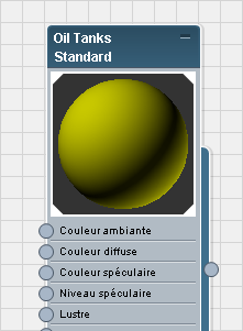 Vous avez utilisé les commandes des matériaux de base, Couleur diffuse, Niveau spéculaire et Lustre pour créer un matériau simple qui ressemble à une peinture légèrement étincelante. La création du matériau des citernes est terminée.