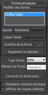 panneau déroulant Formes physiques, vérifiez le type de forme.