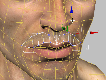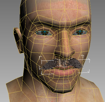 Déplacez les sommets le long de l'arête supérieure de l'objet Moustache pour agrandir la zone de la moustache.