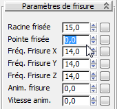 - Dans le panneau déroulant Paramètres de frisure, attribuez la valeur 15,0 au paramètre Racine frisée.