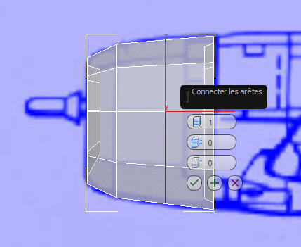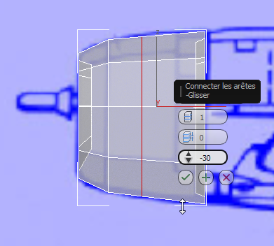 groupe de fonctions Boucles, maintenez la touche Maj enfoncée et cliquez sur Le fait d'appuyer sur la touche Maj tout en cliquant sur Connecter permet d'afficher le chariot de commandes de l'outil Connecter. Ces commandes permettent d'ajuster la connexion des arêtes de manière interactive.