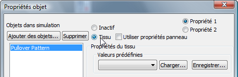 Pour que la simulation du tissu s'effectue correctement, vous devez définir certaines conditions dans la boîte de dialogue Propriétés objet.