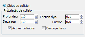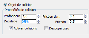 - Dans la zone Propriétés de collision, remplacez la valeur du champ Décalage par 0,15.