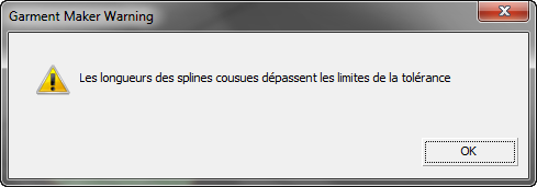 Remarque : Lorsque vous créez des coutures, il est possible que le message d'avertissement suivant s'affiche :