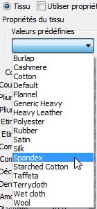 - Dans la liste déroulante Valeurs prédéfinies, choisissez l'option Spandex (Elasthanne).