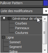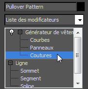 - Dans la pile de modificateurs, cliquez sur le niveau sous-objet Coutures du modificateur Fabricant de vêtement pour le mettre en surbrillance.