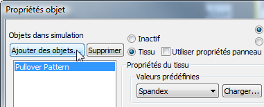 Ce paramètre indique à Tissu de traiter l'objet Modèle pull (modifié dans Fabricant de vêtement) en tant que tissu.