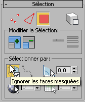 Si vous laissez la case à cocher Ignorer faces masquées activée, seuls les polygones affichés dans la fenêtre sont inclus dans la sélection. Les polygones cachés de l'autre côté du modèle ne sont pas sélectionnés.