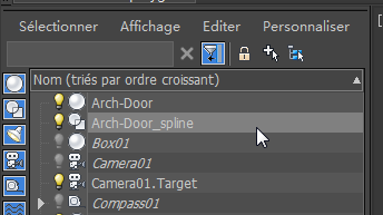 - Dans le groupe de fonctions Explorateur de scènes, cliquez pour sélectionner la nouvelle Arch-Door-Spline.