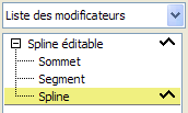 - Dans la liste des modificateurs, développez Spline éditable et cliquez sur Spline.