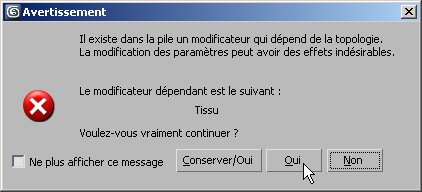 Si 3ds Max affiche l'avertissement de topologie, cliquez à nouveau sur Oui pour le faire disparaître.