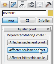 zone Déplacer/Rotation/Echelle, cliquez sur l'option Affecter seulement pivot pour l'activer.