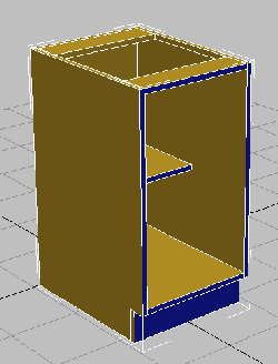 mise en orbite, puis maintenez la touche Ctrl enfoncée et cliquez sur le polygone correspondant de l'autre côté du meuble pour le sélectionner. 3ds Max sélectionne une boucle de polygones qui parcourt l'intérieur de la partie inférieure du meuble.