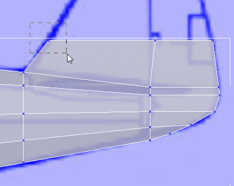 sélectionnez par région les deux sommets du bord d'attaque de la partie supérieure de la queue.