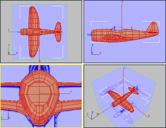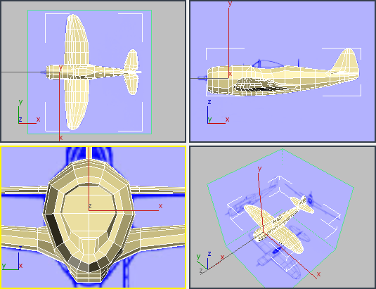 Le lissage NURMS a été un peu trop efficace. Il devrait y avoir des jointures nettes entre certaines parties de l'avion (entre les ailes et le fuselage, par exemple). Vous pouvez résoudre ce problème en utilisant des groupes de lissage. Les groupes de lissage permettent de modifier l'apparence du modèle sans en changer la géométrie. Contrairement au lissage NURMS, les groupes de lissage n'augmentent pas le nombre de faces, qui peut être un facteur important si le modèle préparé est destiné à être utilisé dans un jeu.