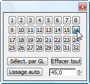 3ds Max ouvre une boîte de dialogue Sélectionner par groupes de lissage. Seuls les groupes de lissage que vous avez attribués jusqu'à présent apparaissent sous forme de boutons.