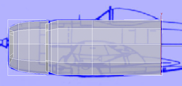 (Extruder). Dans la fenêtre Perspective, mais en observant la fenêtre Face, extrudez le fuselage jusqu'à la jointure située à l'arrière du cockpit.