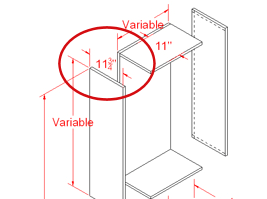 Comme pour l'étagère créée pour le meuble bas, cette valeur représente la largeur totale du meuble (18 pouces) moins 3/4 pouce de chaque groupe de fonctions latéral moins un espace de 1/8 pouce prévu pour retirer l'étagère si nécessaire.