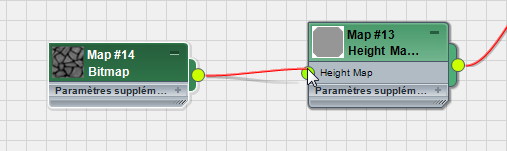 - Reliez le nouveau noeud Bitmap au composant Height Map du noeud Height Map Displacement.