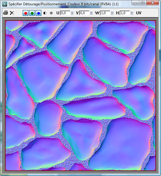 Les couleurs de la map sont importantes. Les maps Relief normal transmettent beaucoup plus de détails que les maps Relief classiques, car les premières utilisent le spectre RVB complet pour les informations de détail des surfaces, tandis que les secondes n'utilisent qu'une simple échelle de gris. Le canal bleu transmet les informations de profondeur verticale, que le rouge et le vert améliorent en apportant un vecteur direction pour l'orientation de la normale de surface à chaque point. Le réalisme est encore plus impressionnant.