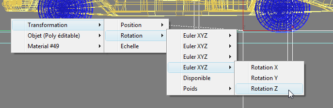 - Cliquez sur l'une des roues de la voiture et choisissez Transformation