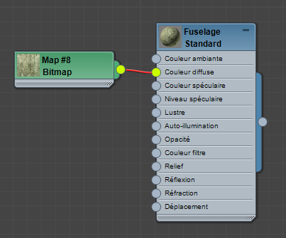 3ds Max ajoute un noeud Bitmap au matériau Fuselage.