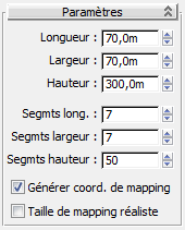 Remarque : Normalement, un bâtiment de 300 m de hauteur est divisé en segments de hauteur 100 afin de créer des étages de trois mètres chacun, mais dans ce didacticiel la valeur est divisée par deux pour une sélection plus facile des polygones.